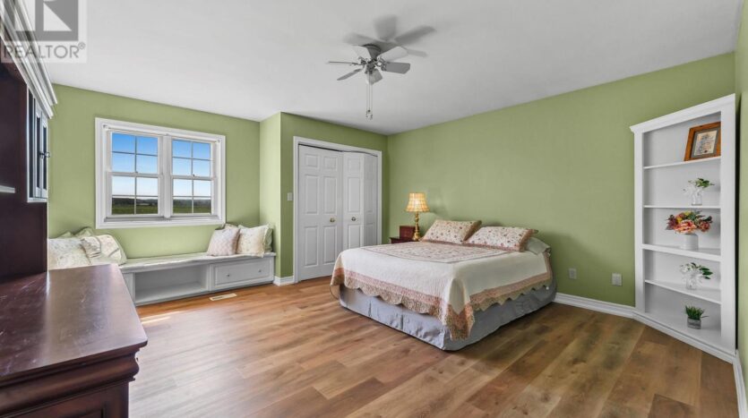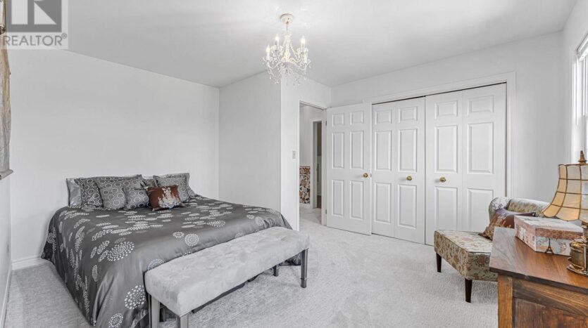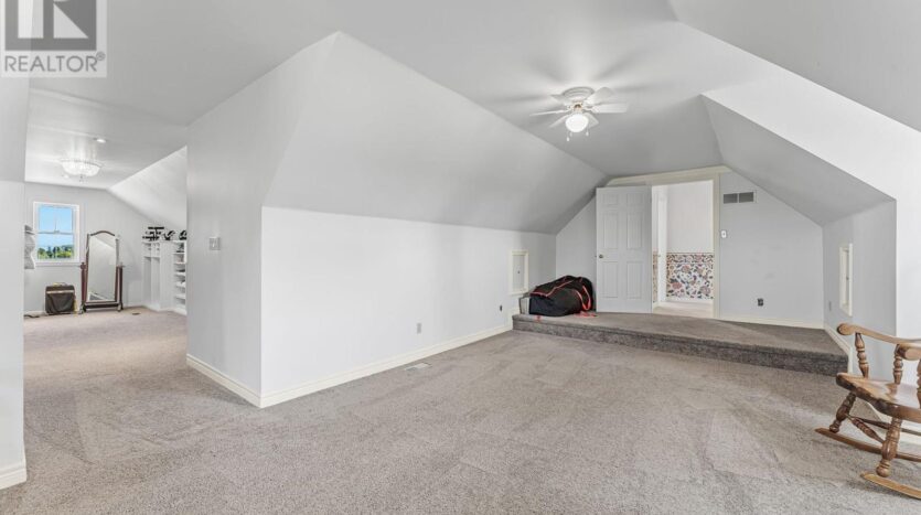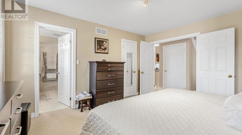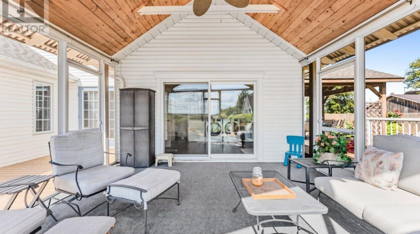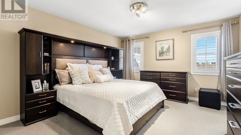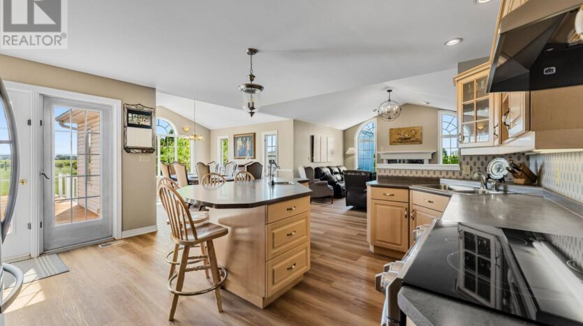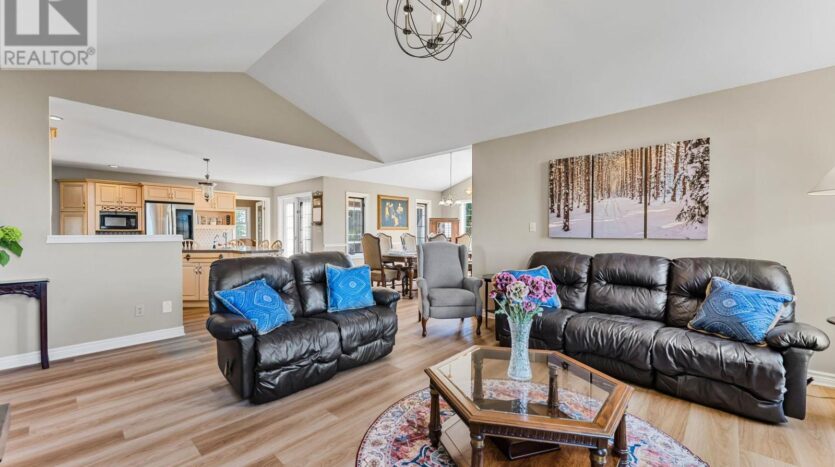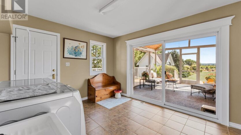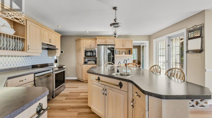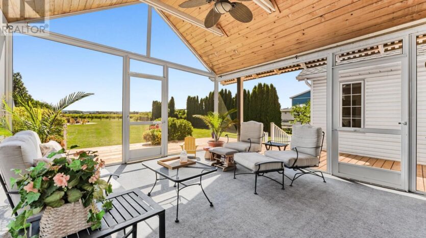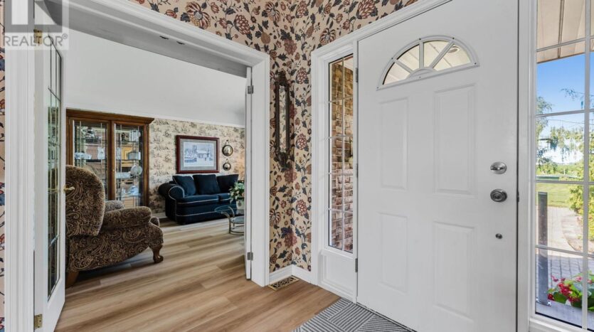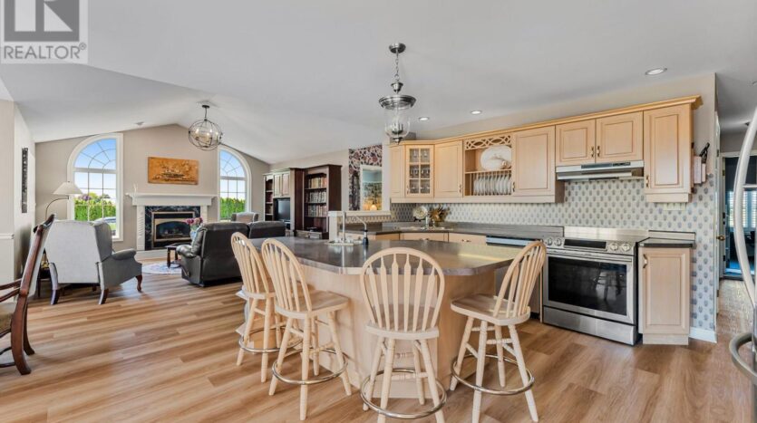 Beautifully maintained custom 2-storey home situated on 2 picturesque acres, surrounded by vineyards! This 3368sqft home showcases several living spaces, ideal for multi-generational & growing families. Welcoming front porch leads into a spacious foyer. French doors open into a lovely den/music room with a cathedral ceiling and a large window overlooking the landscaped front yard. The living room has a focal fireplace, flanked by beautiful windows. This house is designed for entertaining. The kitchen is the centre of the home. Sit down and sample a glass of local wine at the oversized centre island and enjoy an amazing meal with family and friends in the formal dining room. Generous main floor laundry room opens opens to screened-in15x14 porch and to a separate covered deck, ideal for barbecuing in any weather. The main floor also includes a two piece guest bathroom, and the primary bedroom suite with double entry doors, walk-in closet and updated 3-piece ensuite bath. Stand-alone glass shower with rain shower head for the perfect spa experience. Spacious mud room off of the 2 car garage has large double closets and leads into a very spacious office with separate entry. Primary bedroom/ensuite/office have California shutters. On the second floor, two bedrooms share a generous jack and jill bath, each with their own vanity. The second bedroom has a gorgeous window seat overlooking the backyard and the lush surrounding vineyards. The third bedroom, upper hall and stairs showcase brand new carpeting. The second floor also includes a huge bonus room, as well as a large dressing room custom furnished by Closets By Design. The basement is the perfect in-law suite with over 1300 sqft of living space, private entrance, and brand new flooring, gas fireplace and all new kitchen appliances! New furnace and hot water heater as well. 40×60 machine shed has 2 large bays perfect for large vehicles and equipment. One side also serves as a workshop with heated floors!
